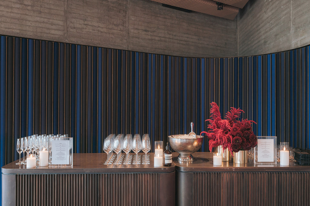 Each year the space is re-envisoned to foster connection and celebrate the years achievements. This year, Eleven designed the space to come alive with a rich palette of deep reds, burgundy, and gold, a lavish symphony of colour and texture. Giant vases brimmed with roses, while layers of velvet added warmth and grandeur to every surface. Heritage images of the Opera House were projected on to the walls, a reminder of what once was.